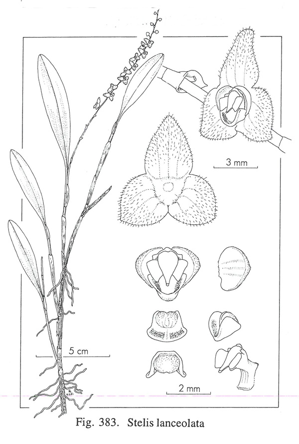 Stelis lanceolata (Ruiz & Pav.) Willd. 1805 SECTION Stelis Drawing by © Carl Luer and The Swiss Orchid Foundation at he Jany Renz Herbaria Website