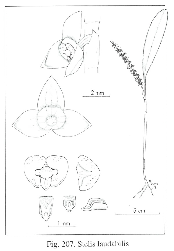 Stelis laudabilis Luer & Hirtz 2007 SECTION NexipousDrawing by © Carl Luer and The Swiss Orchid Foundation at the Jany Renz Herbaria Website