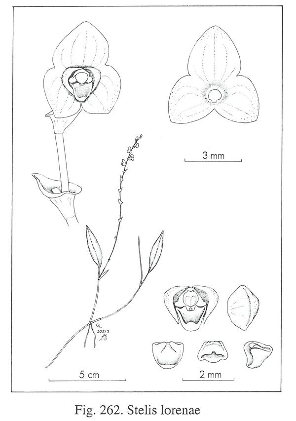Stelis lorenae Luer 2007 SECTION Stelis Drawing by © Carl Luer and The Swiss Orchid Foundation at the Jany Renz Herbaria Website