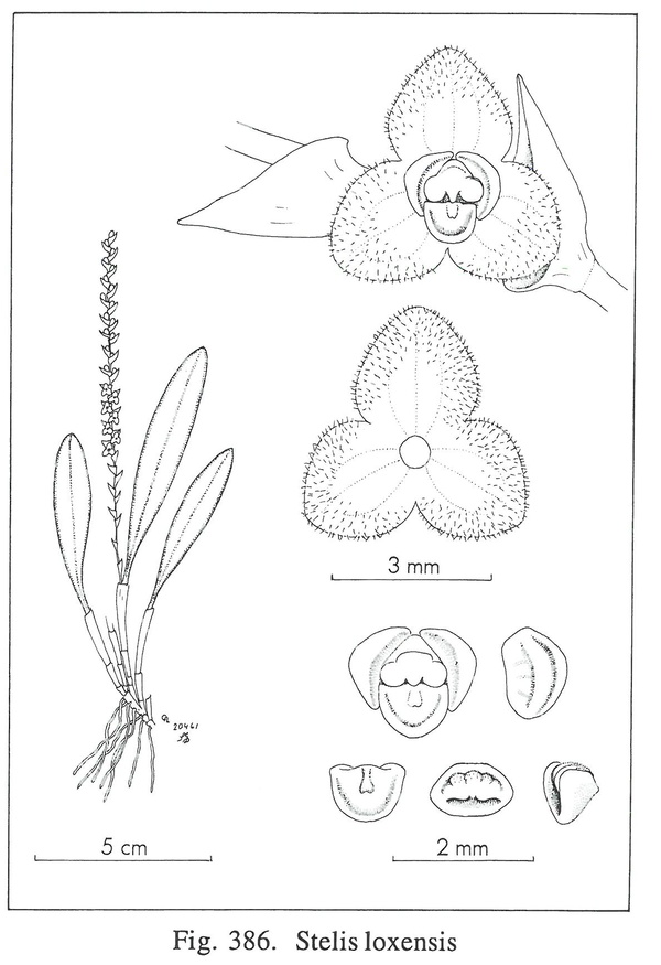 References W3 Tropicos, Kew Monocot list , IPNI ; Fieldiana Botany Vol 33 1st Supplement to the Orchids of Peru Schweinfurth 1970; Orchidaceae Stelis Swartz A Compendium Duque 2008 OK; Icones Pleurothallidinarum Vol XXX Luer 2009 drawing ok to the photo fide to the drawing;