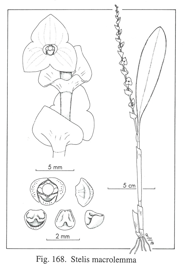 Stelis macrolemma Luer & Endara 2004 SECTION Stelis Drawing by © Carl Luer and The Swiss Orchid Foundation at the Jany Renz Herbaria Website