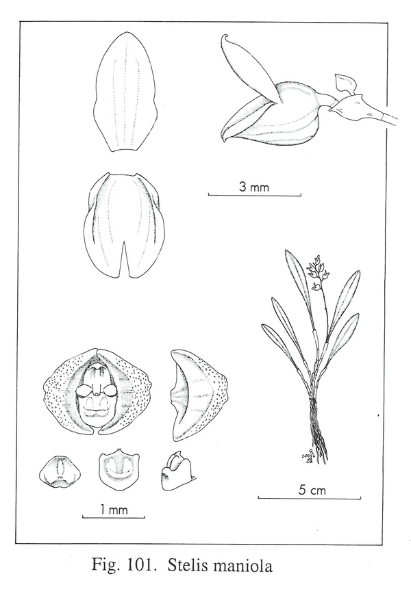 Stelis maniola Luer & Hirtz 2004 SECTION Dialissa Drawing by © Carl Luer and The Swiss Orchid Foundation at the Jany Renz Herbaria Website