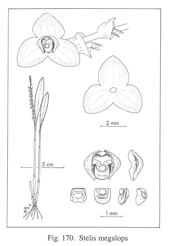 Stelis megalops Luer & Hirtz 2004 SECTION StelisDrawing by © Carl Luer and The Swiss Orchid Foundation at the Jany Renz Herbaria Website