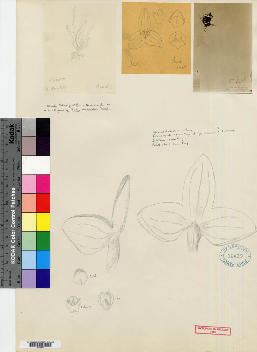 References W3 Tropicos, Kew Monocot list , *Repert. Sp. Nov. Regni. Veg. Beih. 19: 95 Schlechter 1923; Manual de Plantas de Costa Rica Vol 3 Hammel, Grayum, Herrera and Zamora 2003; Orchidaceae Stelis Swartz A Compendium Duque 2008 drawing no
