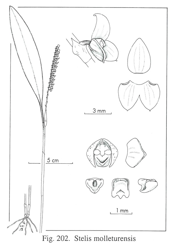 Stelis molleturensis Luer & Hirtz 2004 SECTION LabiataeDrawing by © Carl Luer and The Swiss Orchid Foundation at the Jany Renz Herbaria Website