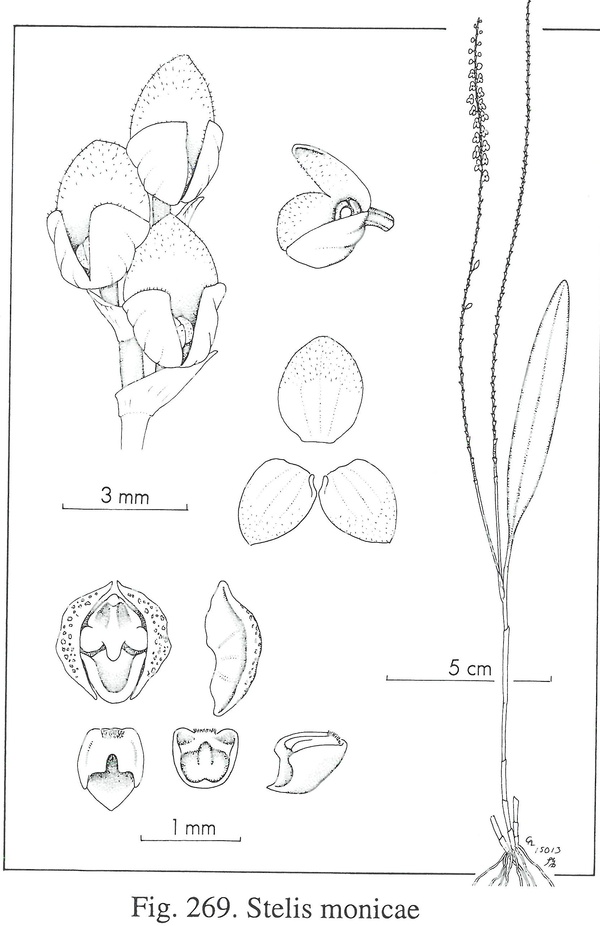 Stelis monicae Luer & Hirtz 2007 SECTION StelisDrawing by © Carl Luer and The Swiss Orchid Foundation at the Jany Renz Herbaria Website