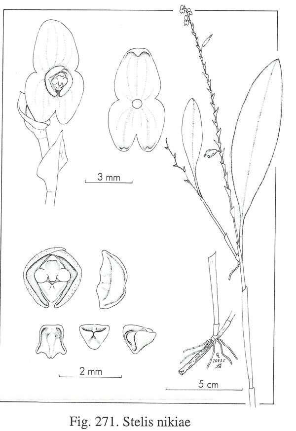 Stelis nikiae Luer & Hirtz 2007 SECTION Stelis Drawing by Carl Luer and The Swiss Orchid Foundation at the Jany Renz Herbaria Website
