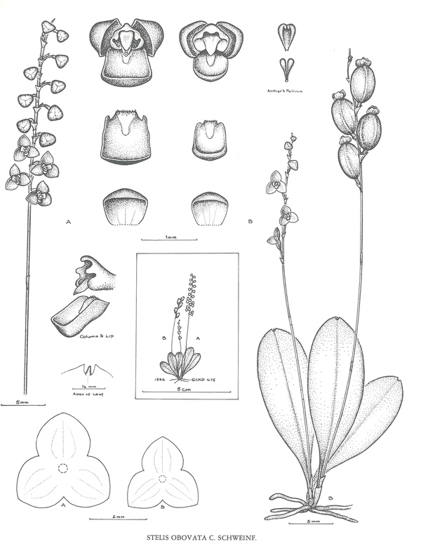 Stelis obovata C.Schweinf. 1961 Drawing by Dunsterville & Garay and The Swiss Orchid Foundation at the Jany Renz Herbaria Website
