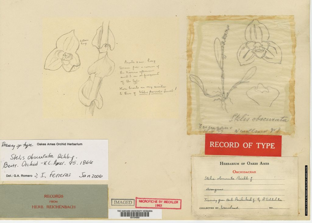Stelis obscurata Rchb.f. 1866 Drawing by Dunsterville & Garay and The Swiss Orchid Foundation at the Jany Renz Herbaria Website