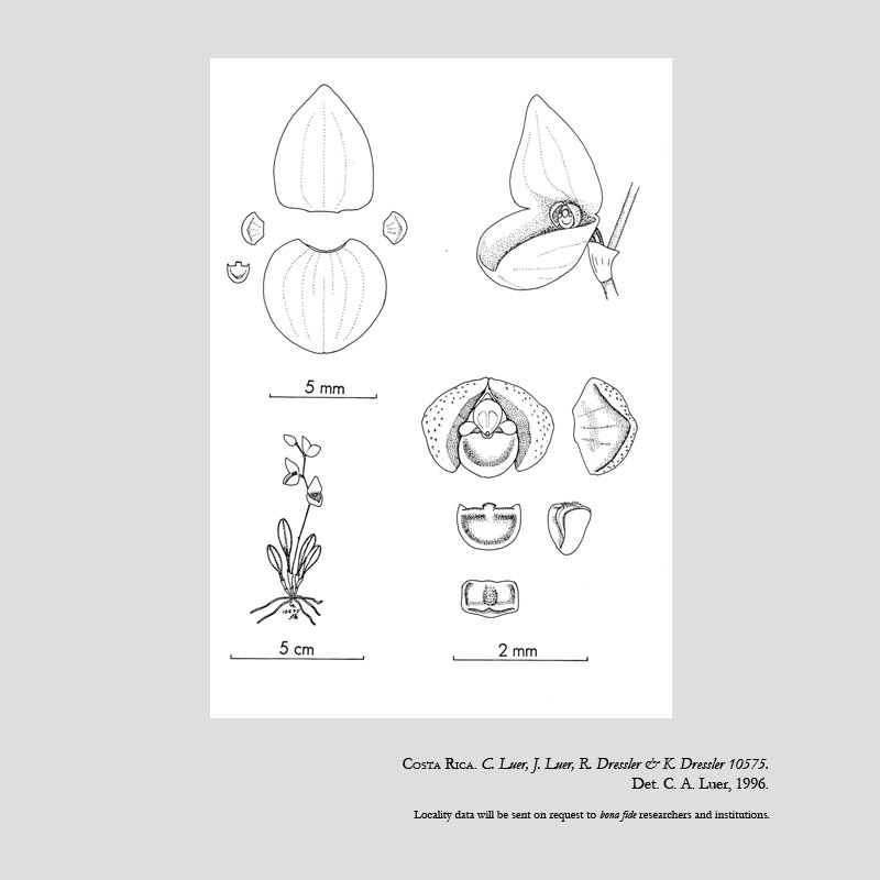 References W3 Tropicos, Kew Monocot list , *Lindleyana 11(2): 105, f. 34 Luer 1996 drawing fide; Manual de Plantas de Costa Rica Vol 3 Hammel, Grayum, Herrera and Zamora 2003; Orchidaceae Stelis Swartz A Compendium Duque 2008 drawing fide;
