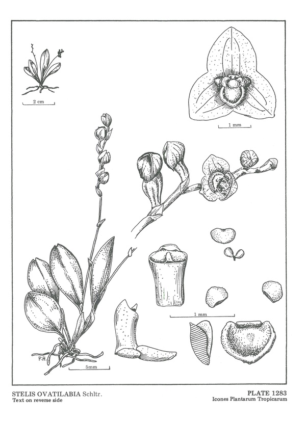 References W3 Tropicos, Kew Monocot list , IPNI ; Orchids of Guatemala Ames Correll 1952 drawing good; Las Orquideas de El Salvador Vol 2 Hamer 1974 drawing/photo fide; Die Orchideen 3 Auflage Bd 1 Sonderabdruck aus Schlechter Lieferung 7 385 - 448 Brieger, Maatsch and Senghas 1975 drawing good; Icones Plantarum Tropicarum Plate 1283 Hamer 1985 drawing fide; Manual de Plantas de Costa Rica Vol 3 Hammel, Grayum, Herrera and Zamora 2003; AOS Bulletin Vol 77 No 12 2006 photo ok; Orquideologia Vol 25 #1 2007 photo ok; Orchidaceae Stelis Swartz A Compendium Duque 2008 drawing fide; Diversity of Pleurothallidinae in Guatemala: An Endangered Orchid Subtribe with High Economic and Horticultural Potentials Edgar Mo Mo, Cetzal, Basu and Vega 2017 photo fide; Orchid Genera and Species in Guatemala Archila, Szlachchetko, Chiron, Lipinska, Mystkowska and Bertolini 2018