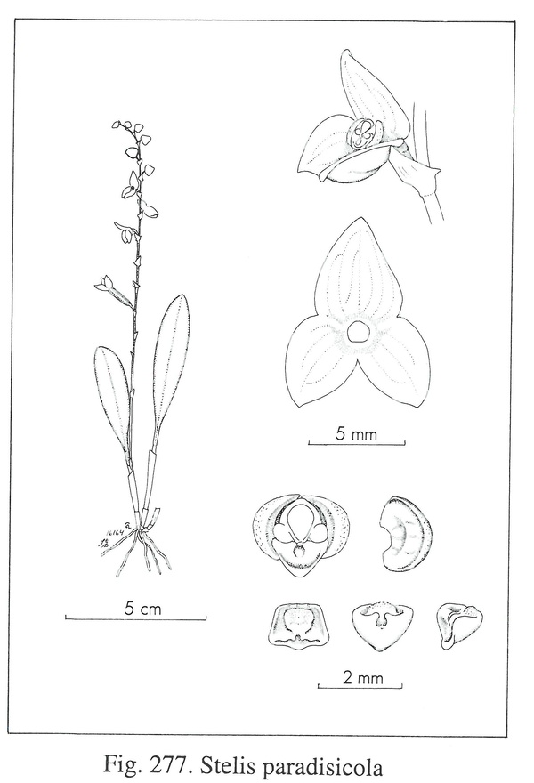 Stelis paradisicola Luer & Hirtz 2007 SECTION Stelis Drawing by Carl Luer and The Swiss Orchid Foundation at the Jany Renz Herbaria Website