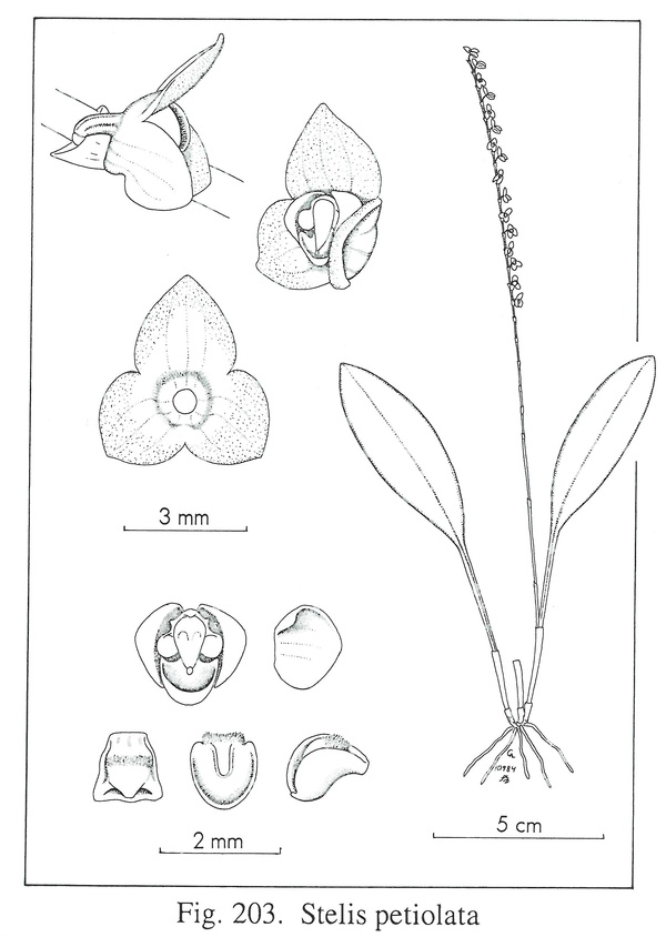 Stelis petiolata Luer & Hirtz 2004 SECTION StelisDrawing by © Carl Luer and The Swiss Orchid Foundation at the Jany Renz Herbaria Website