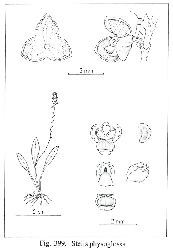 Stelis physoglossa Luer & F.Werner 2009 SECTION Stelis Drawing by © Carl Luer and The Swiss Orchid Foundation at the Jany Renz Herbaria Website