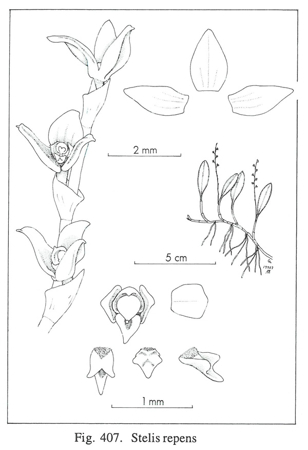 Stelis repens Cogn. 1910 SECTION Stelis Drawing by Carl Luer and The Swiss Orchid Foundation at the Jany Renz Herbaria Website