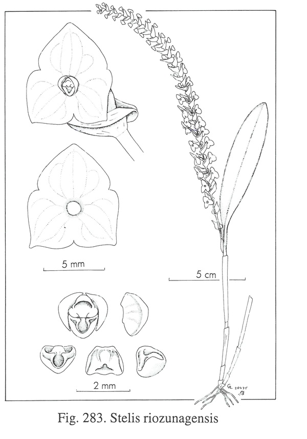 Stelis riozunagensis Luer & Hirtz 2007 SECTION Stelis Type Drawing Carl Luer and The Swiss Orchid Foundation at the Jany Renz Herbaria Website
