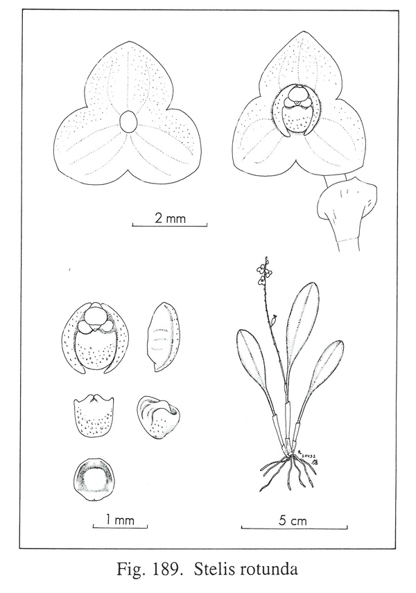Stelis rotunda Luer & Hirtz 2004 SECTION Stelis Type Drawing Carl Luer and The Swiss Orchid Foundation at the Jany Renz Herbaria Website