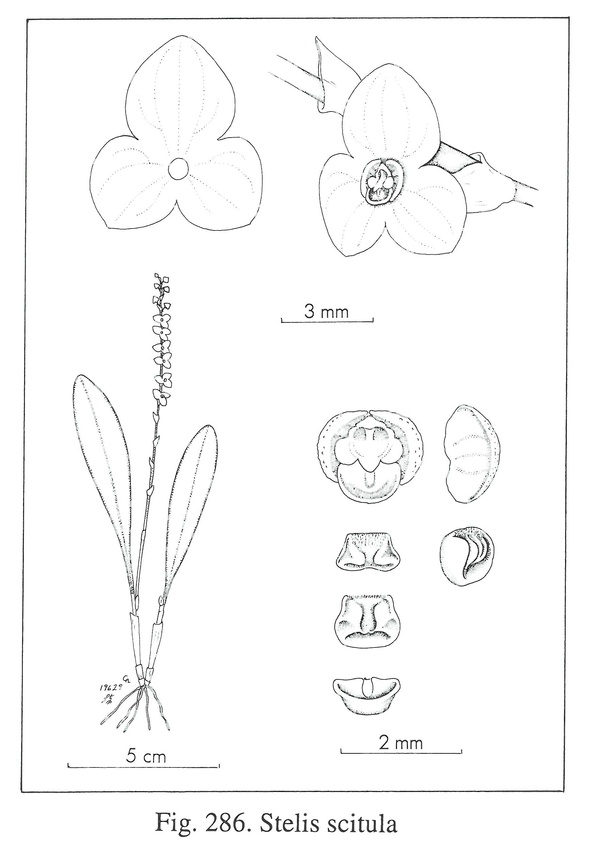 Stelis scitula Luer & Hirtz 2007 SECTION Stelis Drawing by Carl Luer and The Swiss Orchid Foundation at the Jany Renz Herbaria Website
