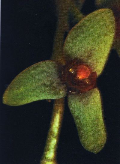 Found in Imbabura Ecuador at elevations of 3300 to 3700 meters as a mini-miniature sized, cold growing epiphyte with an ascending, repent rhizome givingrise to erect ramicauls enveloped by 2, close, tubular sheaths and carrying a single, apical, erect, coriaceous, elliptical, subacute to obtuse, cuneate below into the slender petiolate base leaf that blooms in the late summer and fall on an erect, strict, congested, secund, 3.2 to 6" [8 to 15 cm] long including the 1 to 1.2" [2.5 to 3 cm] long peduncle, mostly simultaneously many flowered inflorescence arising through a narrow, tubular spathe from an annulus near the apex of the ramicaul with oblique, infundibular, acute floral bracts.