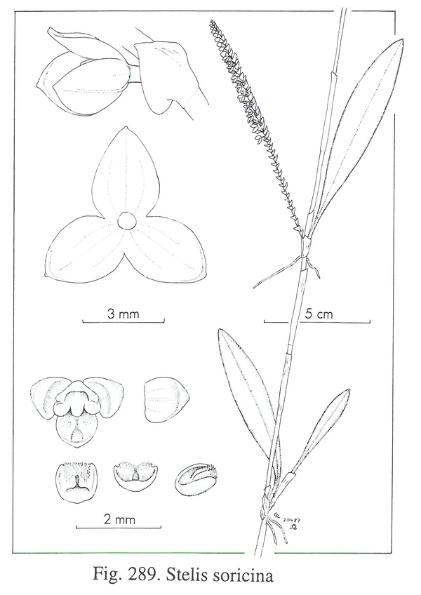 Stelis soricina Luer & Hirtz 2007 SECTION Stelis Drawing by Carl Luer and The Swiss Orchid Foundation at the Jany Renz Herbaria Website