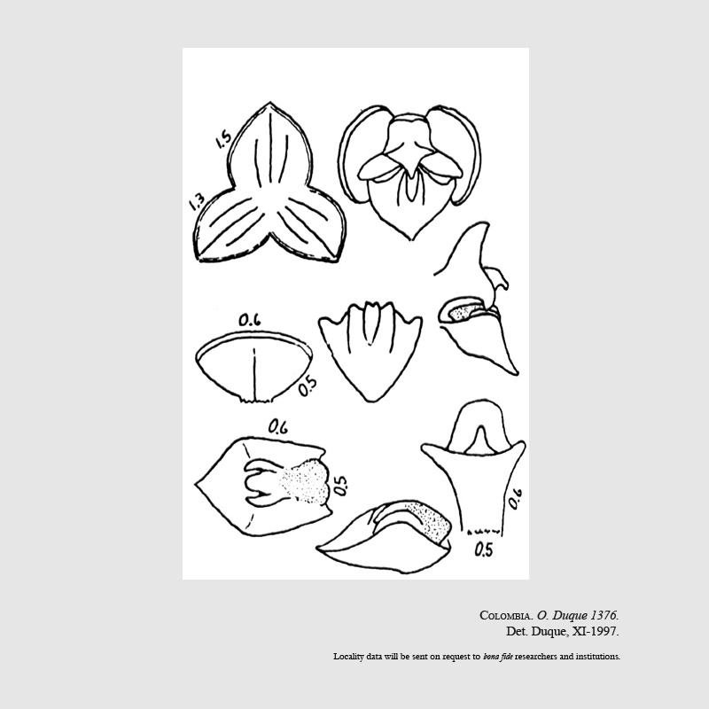 References W3 Tropicos, Kew Monocot list , IPNI ; *Orquideología Vol 20 #3 pg 360, 368, 372–373, pl. 8, f. 1–3; pl. 14, f. 2 Duque 1997 photo/drawing fide; Orchidaceae Stelis Swartz, A Compendium Duque 2008 Drawing good