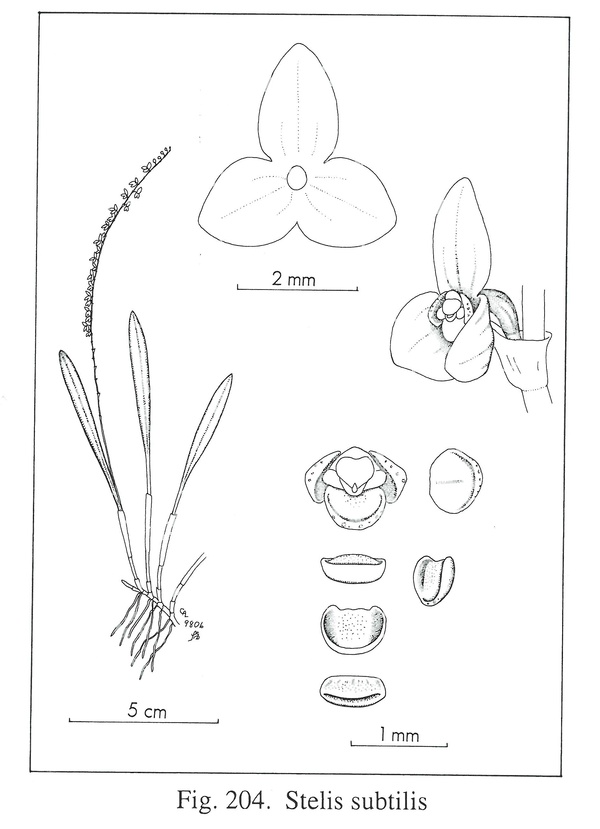 Stelis subtilis Luer & Dalström 2004 SECTION Labiatae Drawing by Carl Luer and The Swiss Orchid Foundation at the Jany Renz Herbaria Website