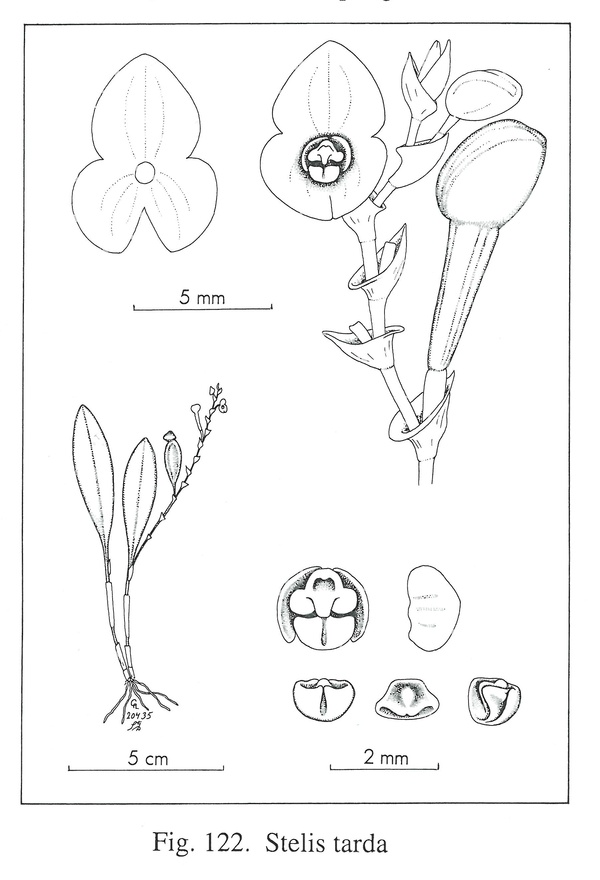 Stelis tarda Luer & Hirtz 2004 SECTION Humboldtia Drawing by © Carl Luer and The Swiss Orchid Foundation at the Jany Renz Herbaria Website