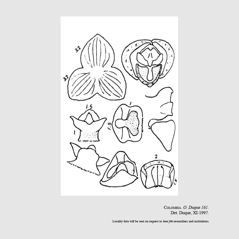 References W3 Tropicos, Kew Monocot list , IPNI ; *Orquideología Vol 20 #3 pg 360, 368, 374–376 Duque 1997 photo/drawing fide