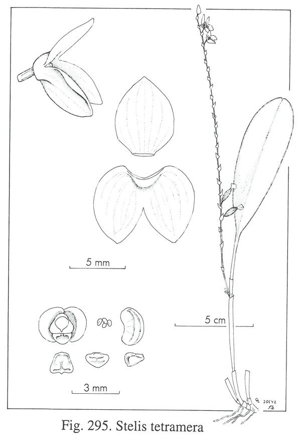 Stelis tetramera Luer 2007 SECTION Stelis Drawing by © Carl Luer and The Swiss Orchid Foundation at the Jany Renz Herbaria Website