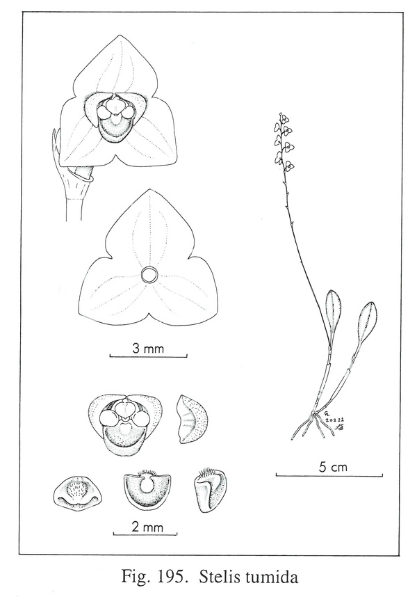 Stelis tumida Luer & Hirtz 2004 SECTION Stelis Drawing by © Carl Luer and The Swiss Orchid Foundation at the Jany Renz Herbaria Website