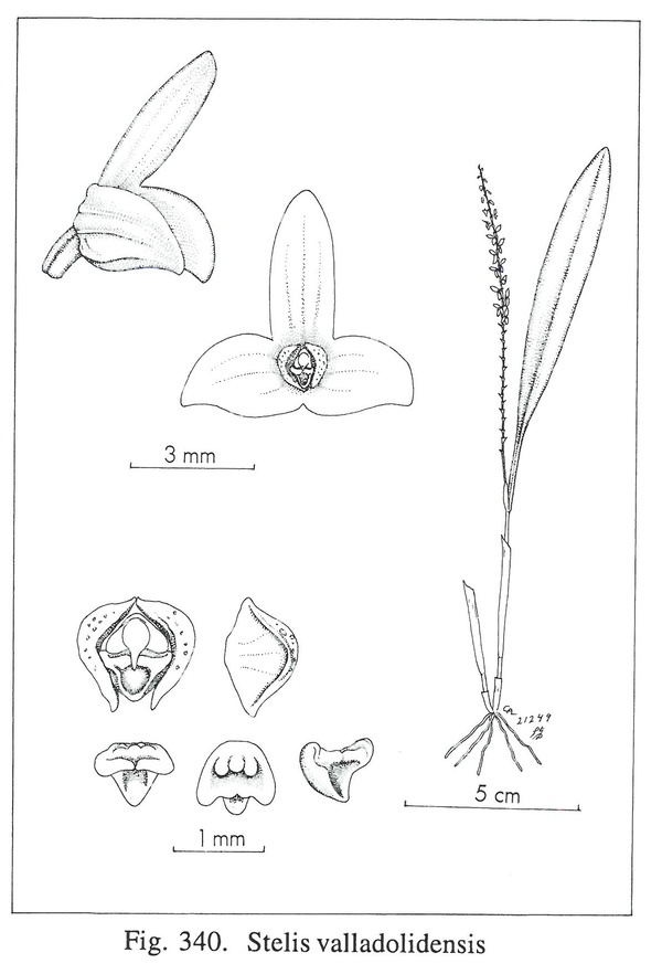 Stelis valladolidensis Luer & D'Aless. 2009 SECTION Humboldtia Drawing by © Carl Luer and The Swiss Orchid Foudantion at the Jany Renz Herbaria Website