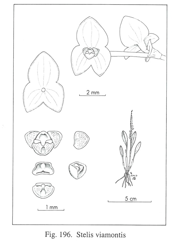 Stelis viamontis Luer & Hirtz 2004 SECTION Stelis Drawing by © Carl Luer and The Swiss Orchid Foundation at the Jany Renz Herbaria Website