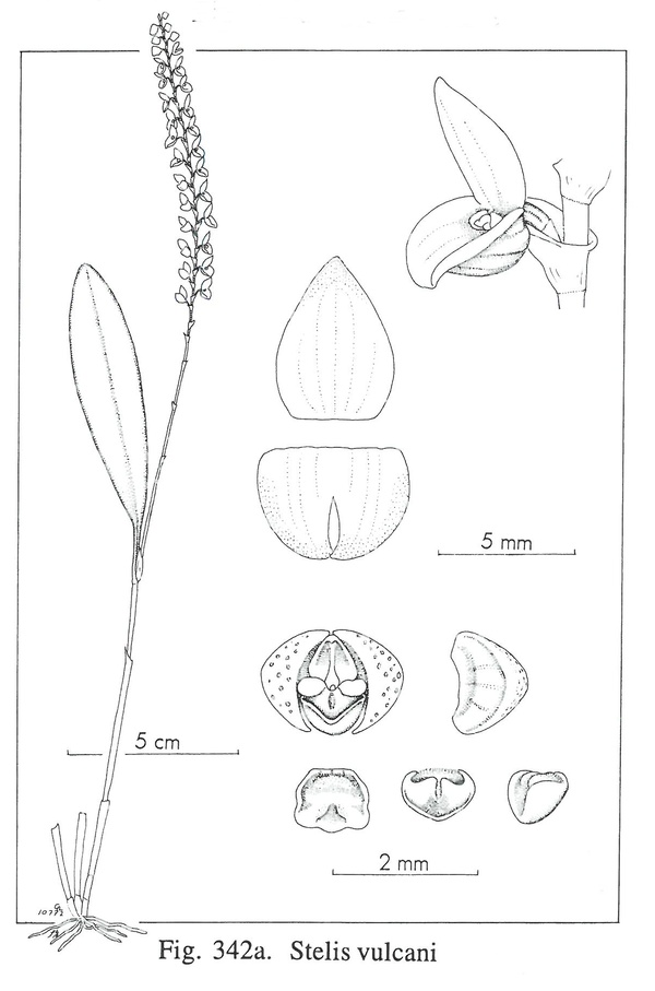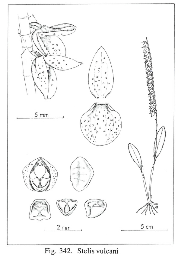 References W3 Tropicos, Kew Monocot list , IPNI ; *Otia Botanica Hamburgensia Rchb.f 1878; Flora de Venezuela Volumen 15 Parte 2 Foldats 1970 drawing ok; Venezuelan Orchids Illustrated Vol 4 Dunsterville & Garay 1966 drawing ok; Flora de Venezuela Volumen XV Parte 2 Foldats 1970 drawing good; Orchids of Venezuela, An Illustrated Field Guide Vol 3 Dunsterville & Garay 1979 drawing ok; Orchids of Venezuela [An illustrated field guide] Vol. 3 Ramiro and Carnevali 2000 drawing ok; Native Ecuadorian Orchids Vol 5 Dodson 2004 photo not=S vulcanica; Orquideas Nativas del Tachira Cesar Fernandez 2003 photo ok; Native Ecuadorian Orchids Vol 5 Dodson 2004 photo not = S nanegalensis; Orchidaceae Stelis Swartz A Compendium Duque 2008 as S ecallosa drawing good; Orchidaceae Stelis Swartz A Compendium Duque 2008 drawing good; Icones Pleurothallidinarum Vol XXX Luer 2009 drawing fide