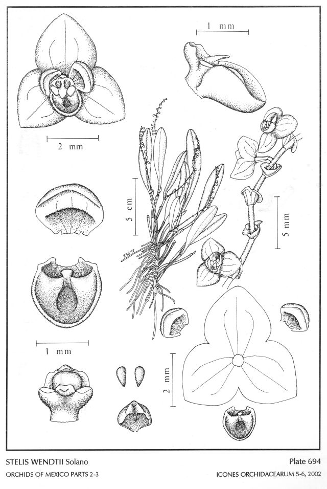 References W3 Tropicos, Kew Monocot list , IPNI ; Icones Orchidacearum 5-6 Plate 694 Solano2002 as Stelis nonresupinata drawing fide; Orchid Genera and Species in Guatemala Archila, Szlachchetko, Chiron, Lipinska, Mystkowska and Bertolini 2018