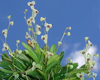 Found in Zamora-Chinchipe Ecuador at elevations around 2450 meters as a miniature sized, cold growing epiphyte with erect, slender ramicauls enveloped by 2 tubular sheaths and another at the base and carrying a single, apical, coriaceous, erect, narrowly elliptical, acute to subacute, cuneate below into the petiolate base leaf that blooms summer and fall on an erect, subcongested, subflexuous, .6 to 1" [1.5 to 2.5 cm] long including the .6 to 1" [1.5 to 2.5 cm] long peduncle, successively several, many flowered, racemose inflorescence arising through an annulus below the apex of the ramicaul and has several flowers open simulataneously.