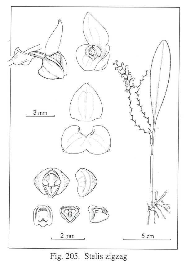 Stelis zigzag Luer & Hirtz 2004 SECTION Stelis Drawing by © Carl Luer and The Swiss Orchid Foundation at the Jany Renz Herbaria Website