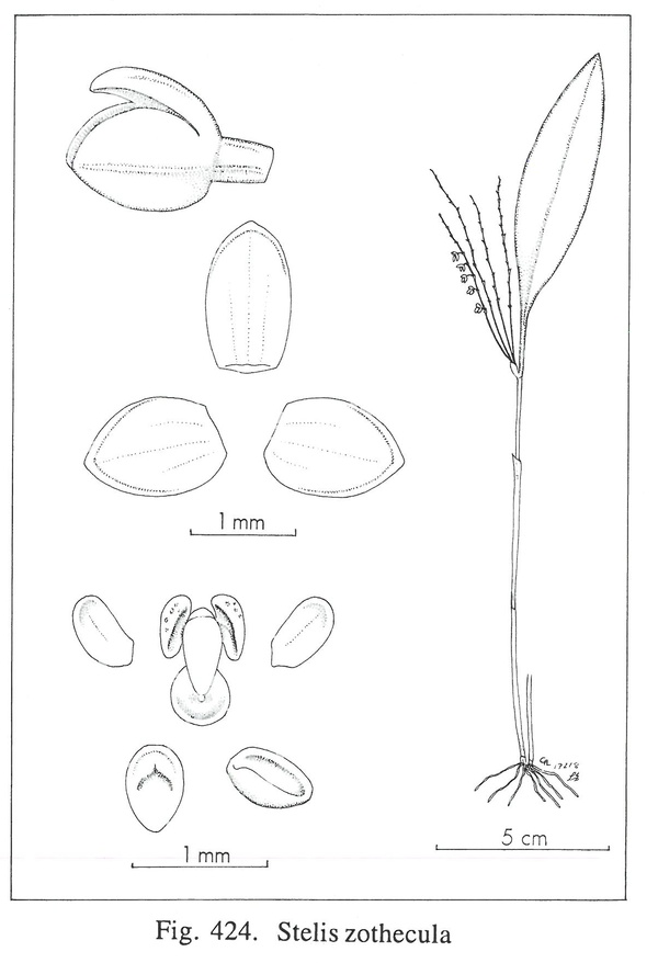 Stelis zothecula Luer 2009 SECTION Stelis Drawing by © Carl Luer and The Swiss Orchid Foundation at the Jany Renz Herbaria Website
