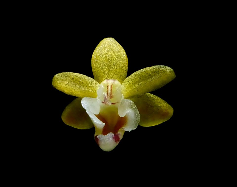Found in Bhutan, Sikkim India, Nepal, eastern Himalayas, Sikkim, Yunnan province of China, Myanmar, Thailand and Vietnam in tropical valleys at elevations of 600 to 1900 meters as a miniature to small sized, warm to cool growing, monopodial epiphyte with a short stem carrying several linear leaves with bilobed apices and articulated to the stem below that blooms in the spring and summer on an axillary, lateral, 1" [2.5 cm] long, few to several flowered, racemose inflorescence.