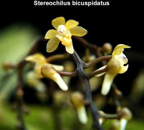 Synonyms Cleisostoma bicuspidatum Hkr.f 1890; *Sarcanthus asperum Rchb.f 1865; Sarcanthus bicuspidatus (Hook. f.) J.J. Sm.1912; Sarcanthus khasiaensis Tang & F.T.Wang 1951; Stereochilus bicuspidatus (Hook. f.) King & Pantl. 1898