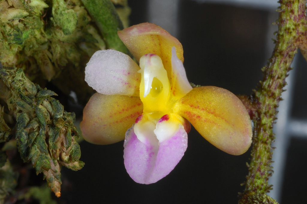 A miniature to small sized, hot growing monopodial epiphyte occuring in Assam India, eastern Himalayas, Sikkim, Bhutan and Myanamar at elevations around 175 to 700 meters with a short stem carrying, lorate, very thick, straight horizontal leaves that blooms in the late spring on a drooping, 1 to 3" [2.5 to 7.5 cm] long, slender, pubescent, racemose inflorecence with a few, short-lived, glabrous flowers.