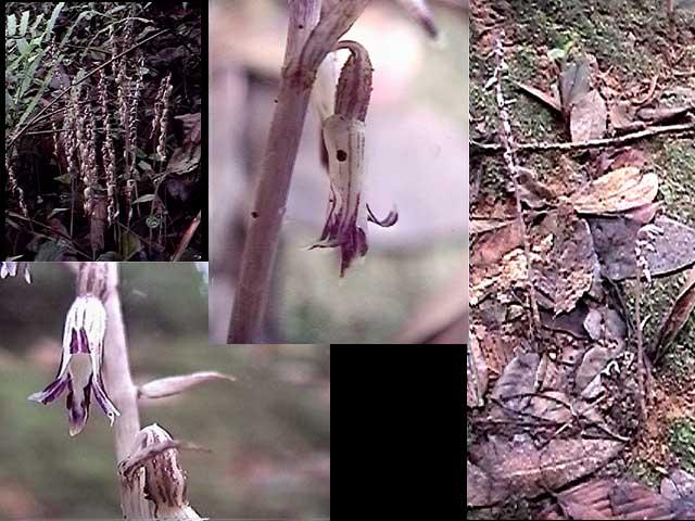Found in Myanmar, Thailand, Vietnam, Java, Sumatra, Borneo, the Philippines, New Guinea, Solomon islands, Taiwan, Samoa and the Ryukyu Islands in humid, shady, lowland primary montane forests at elevations around 250 to 1500 meters as a small sized, hot to coolgrowing, mycoheterotrophic terrestrial with an elongated tuber of several short, swollen internodes with erect, pale yellowish shoots carrying a few short sheaths to 16" [40 cm] tall and blooms in the spring on a terminal, 6" [15 cm] long, successively laxly several to many flowered rachis with to 6 flowers open at any one time.