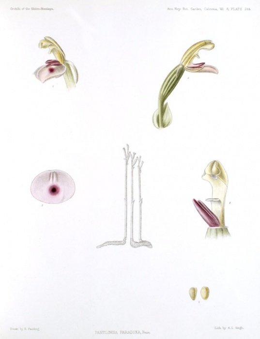 References W3 Tropicos, Kew Monocot list , IPNI ; *The Orchids of Sikkim-Himalaya Part 1 King & Pantling 1898 as Pantlingia paradoxa drawing fide; Die Orchideen 3 Auflage Bd 1 Sonderabdruck aus Schlechter Lieferung 6 321 - 384 Brieger, Maatsch and Senghas 1975; Indian Orchids, Guide to Identification and Culture Pradhan 1976 as Pantlingia paradoxa drawing fide; The Orchids of Bhutan Pearce & Cribb 2002 as Pantlingia paradoxa drawing fide;