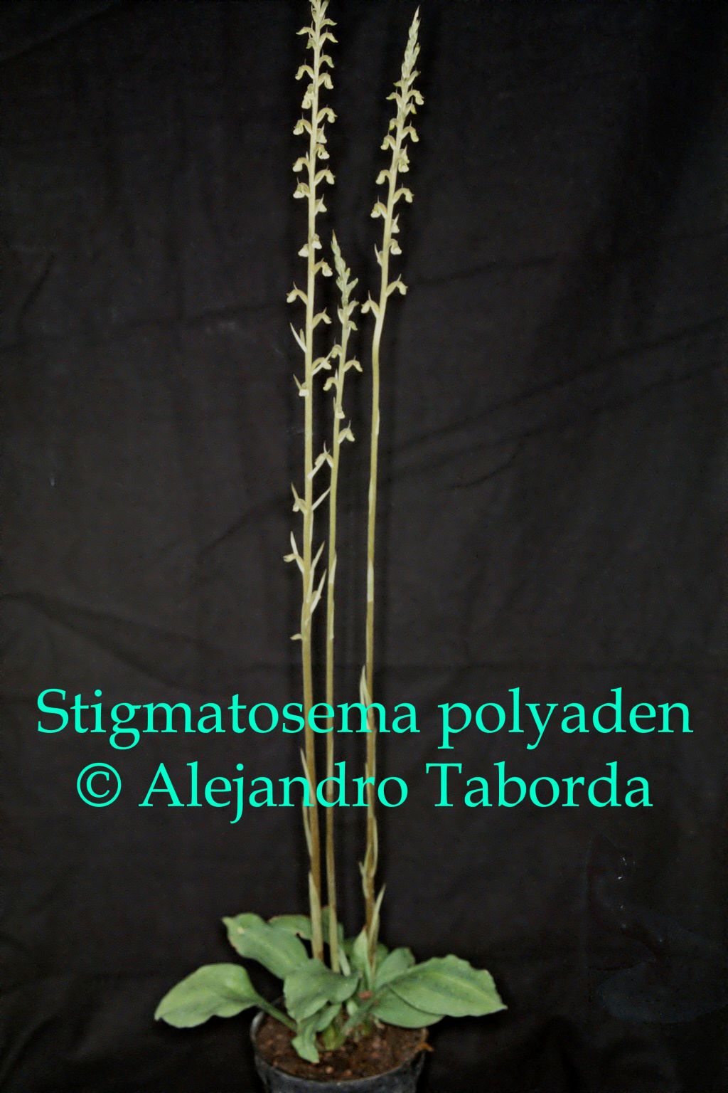 References W3 Tropicos, Kew Monocot list , IPNI ; Rudolf Schlechter Die Orchideen Band 1C lieferung 40 pg 2492 - 2564 Brieger 2000 as Stigmatosema polyaden; Orchidees du Bresil As Orquideas da Serra do Castelo Espirito Santo Brasil Vol 1 Chiron & Bolsanello 2015 drawing fide/photo fide