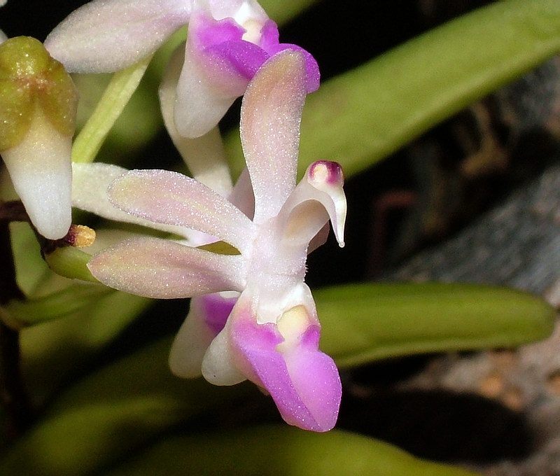 Found in Yunnan China, Vietnam and China at elevations of 800 to 1400 meters as a miniature sized, cool to warm growing epiphyte that has a small compressed Vanda-like growth habit, and blooms in the spring on an axillary, 4" [10 cm] long, inflorescence with several flowers.