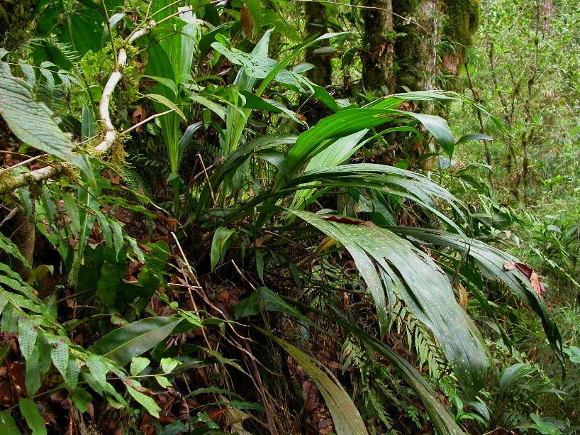 Found in Colombia, Ecuador and Peru at elevations around 2200 meters in cloudforests as an epiphyte with elongate pseduobulbs without spines and carrying 3, plicate, drooping, lanceolate, leaves that blooms in the late spring and early summer on an erect, 1.4" [3.5 cm] long, single flowered inflorescence with 4 short sheathing bracts.