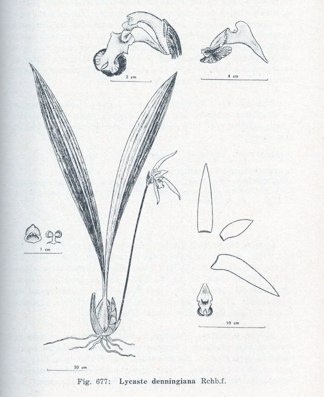 References W3 Tropicos, Kew Monocot list, IPNI Venezuelan Orchids Vol 3 Dunsterville & Garay 1965 as Lycaste denningiana not = L dunstervillei drawing fide; Flora de Venezuela Volumen 15 Quarta parte Foldats 1970 as L denningiana drawing fide;