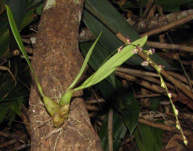 Found in Yunnan province of China and Thailand on trees in mixed forests at elevations of 1400 to 1700 meters as a small sized, warm to cool growing epiphyte with close set, conic pseudobulbs carrying a single, apical, erect leaf that blooms in the spring on an ascending, 5" [12.5 cm] long, to more than 10 flowered inflorescence with 3 to 4 tubular sheaths and narrowly lanceolate, acute floral bracts