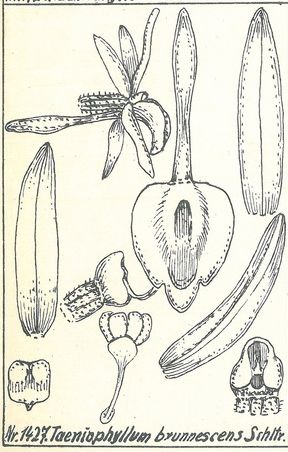 Taeniophyllum brunnescens Schltr. 1913 SUBGENUS Taeniophyllum SECTION Trachyrachis Schlechter