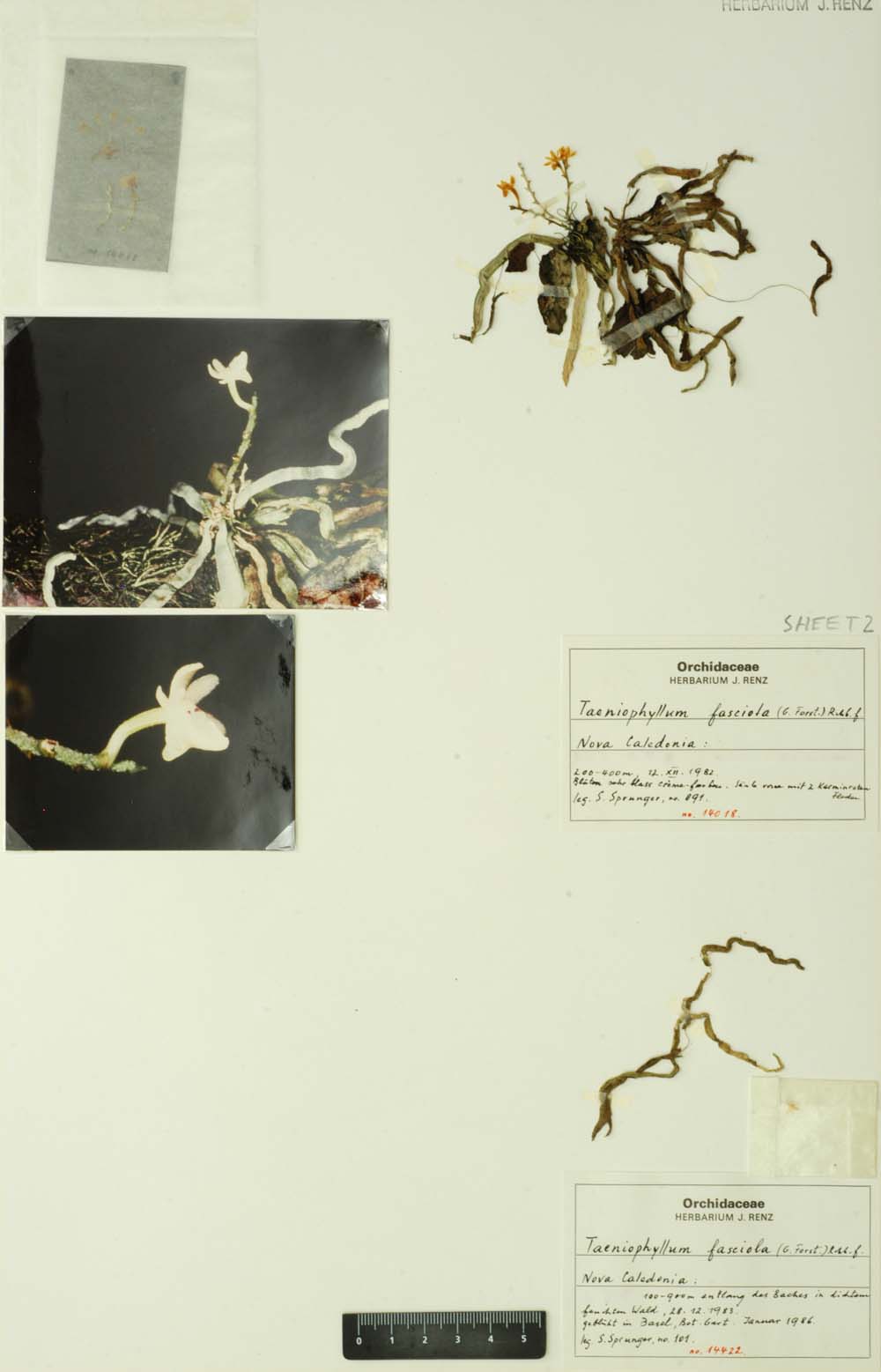 Synonyms *Epidendrum fasciola G.Forst. 1786; Limodorum fasciola (G.Forst.) Sw. 1800; Limodoron fasciolum (G.Forst.) St.-Lag. 1880; Microtatorchis fasciola (G.Forst.) Schltr. 1905; Taeniophyllum asperulum Rchb.f. 1878; Taeniophyllum decipiens Schltr. 1911; Taeniophyllum fasciola var. mutina N.Hallé 1977; Taeniophyllum minutissimum Schltr. 1906; Taeniophyllum parhamiae L.O.Williams 1939; Taeniophyllum seemannii Rchb.f. 1868; Vanilla fasciola (G.Forst.) Spreng. 1815