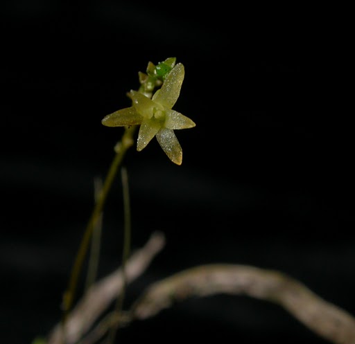 Found in Thailand, Malaysia and Borneo in lower montane forests at elevations of 900 to 1500 meters as a small sized, warm to cool growing epiphtye without leaves and has flat roots that blooms on a very slender, to 1.2" [3 cm] long, successsively single flowered inflorescence carrying short-lived flowers